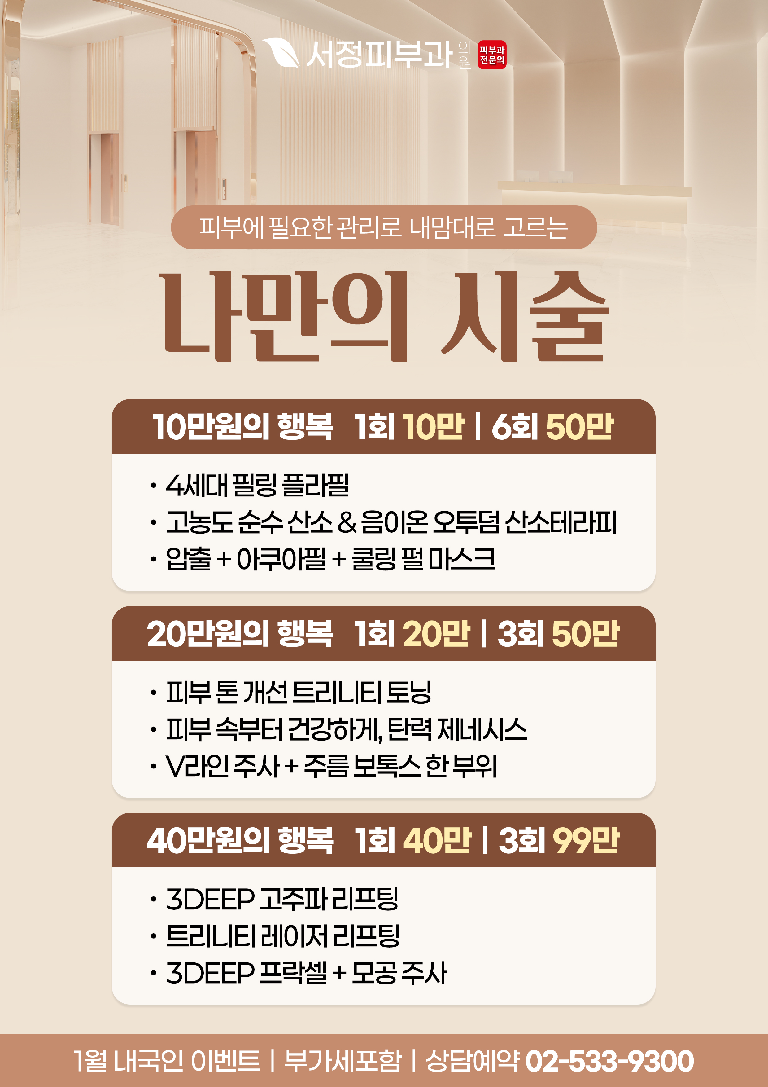 일반 피부질환부터 미용시술까지! 당신의 피부, 서정피부과가 집중하겠습니다.
